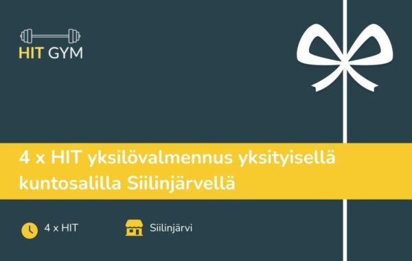 Tämä lahjakortti oikeuttaa neljään yksilövalmennuskertaan HIT Gymillä Siilinjärvellä.
