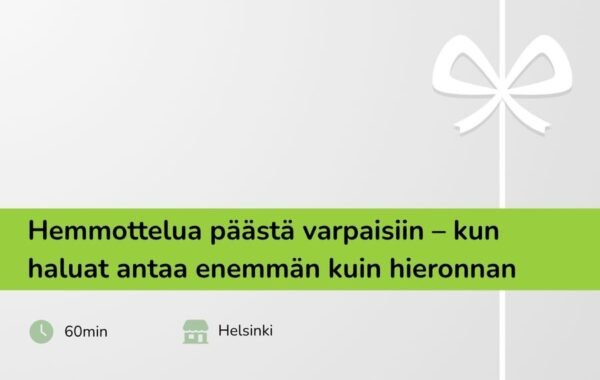 Koti 〉 Kaikki lahjakortit 〉 Hemmottelua päästä varpaisiin (60 min) – kun haluat antaa enemmän kuin hieronnan – Eveliinanpolku