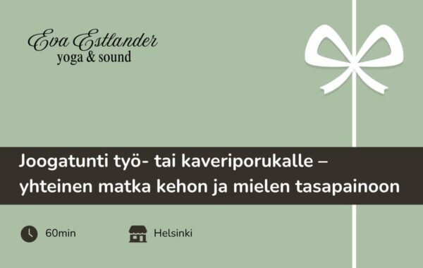 Koti 〉 Kaikki lahjakortit 〉 Joogatunti työ- tai kaveriporukalle (60min) – yhteinen matka kehon ja mielen tasapainoon – Eva Estlander Wellness & Yoga